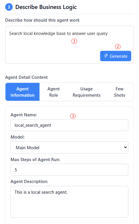 - Click "Generate"; Nexent will generate detailed agent content for you