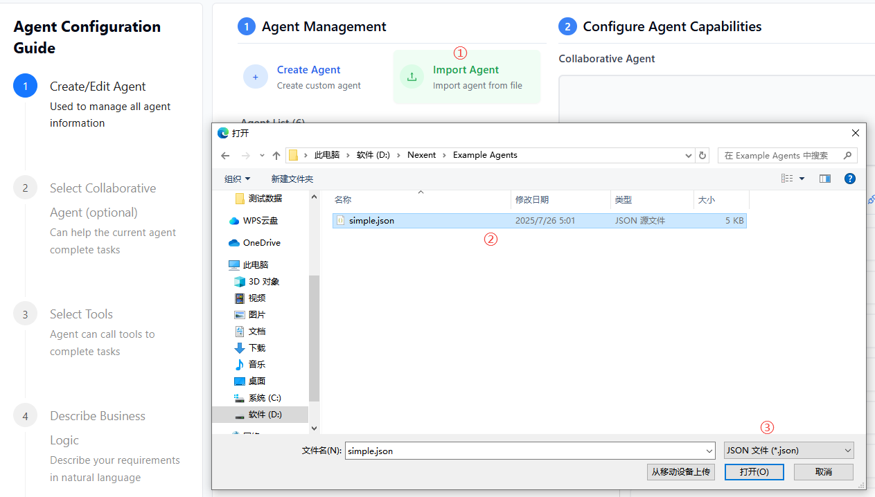 - Click "Open"; the system will validate the file format and content, and display the imported agent information