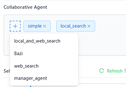 - Click the plus sign under the "Collaborative Agent" tab to open the selectable agent list