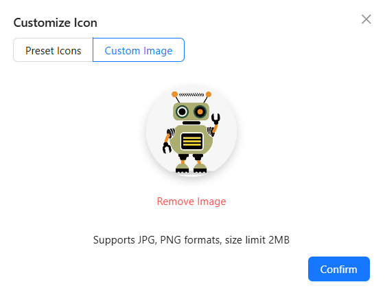 - Upload a custom image: Supports PNG and JPG formats, with a file size limit of 2MB.