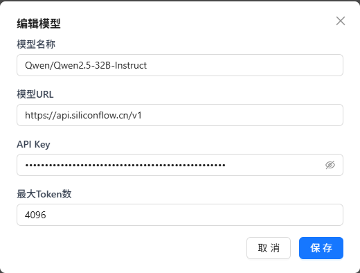 - 配置完成后,点击"确定"按钮,模型将被添加到可用模型列表中。